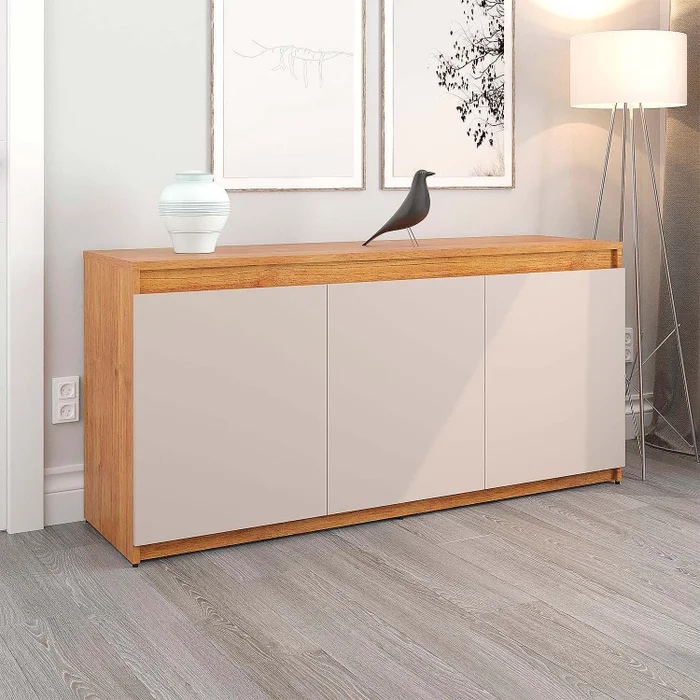 Buffet Ares Lux 3 Portas, Côr Off White/Nature