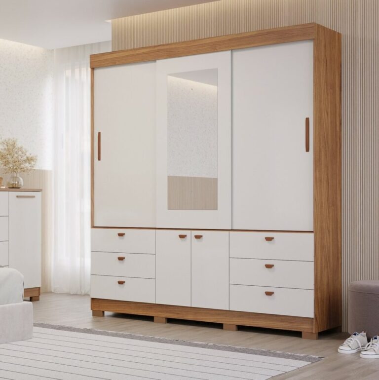 Guarda-Roupa 3 Portas Slide Alice 1,92 m Cinamono/Off White – PANAN MÓVEIS