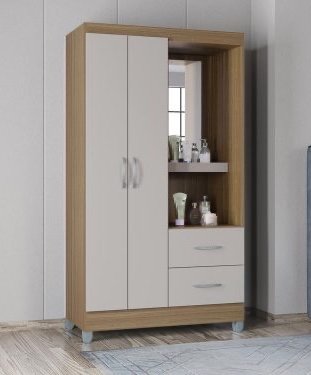 Guarda-Roupa Panamá 3 1 espelho – Cinamomo Ripado/Off White Flex