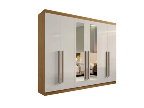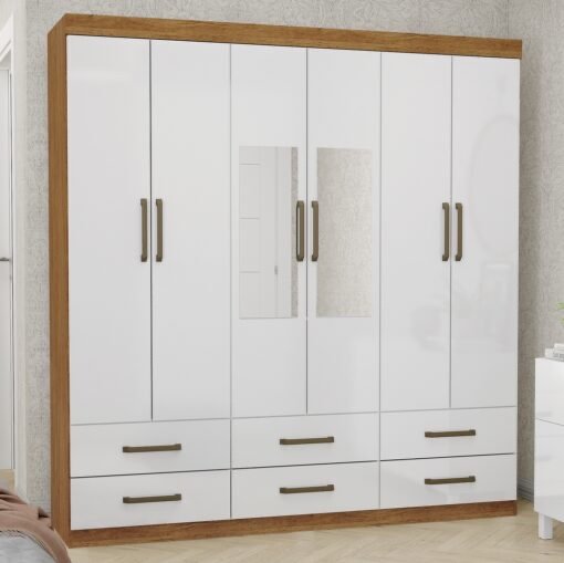 Guarda-Roupa 6 Portas Com Espelho Dallas Cinamono/Branco