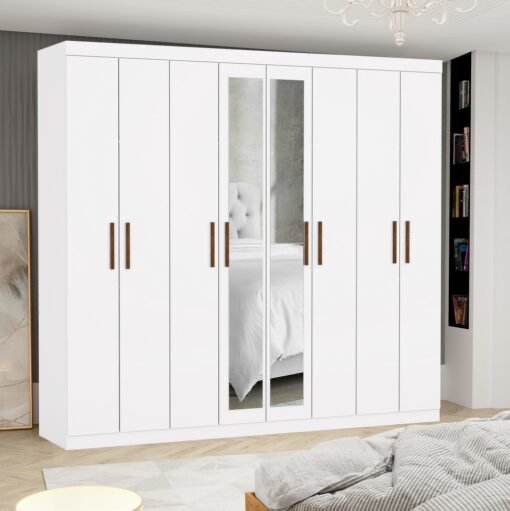 Guarda-Roupa 8 Portas Rubi 2,08 m(Com Espelho)Branco