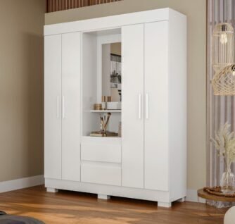 Guarda-Roupa 6 Portas Com Espelho Áries Branco
