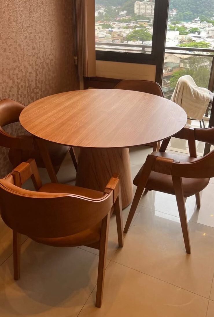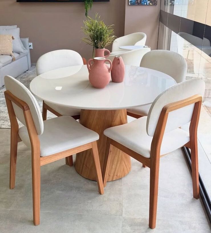 Mesa Bali Circular 110×110 C/4 Cadeiras Pérola Madeira Maciça Bege