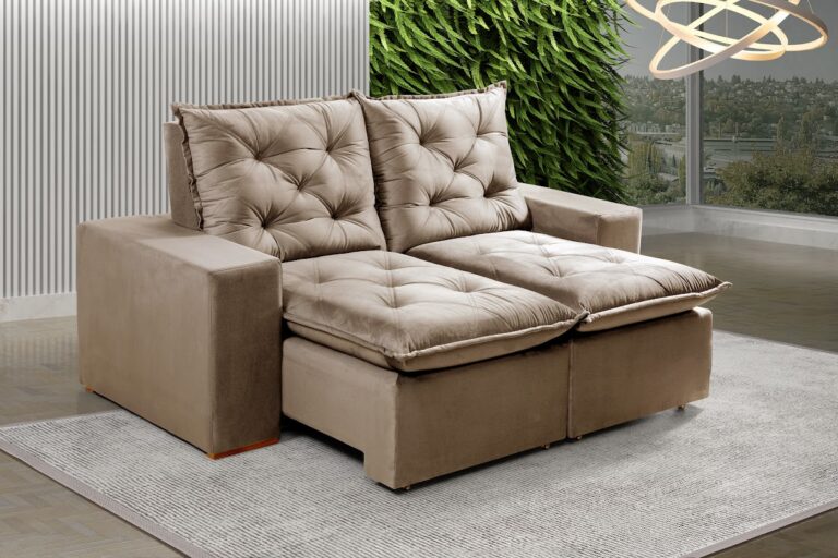 Sofá Retrátil Reclinável Beatriz 1.90m – Bege Veludo