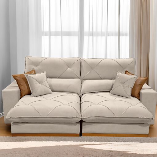 Sofá Retrátil e Reclinável Aquiles Veludo Bege D33