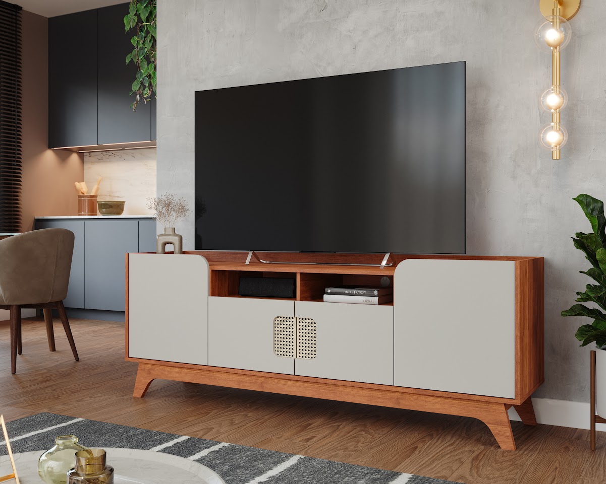 A Bancada Paris, a fusão perfeita entre design e detalhes encantadores Fabricada em 100% MDF de alta qualidade, esta peça única destaca-se com detalhes em tela sintética e pés robustos de MDF de 25mm Com quatro portas de abrir, equipadas com dobradiças de 35mm e fechamento suave (slow motion), a Bancada Paris é a adição elegante que sua casa merece