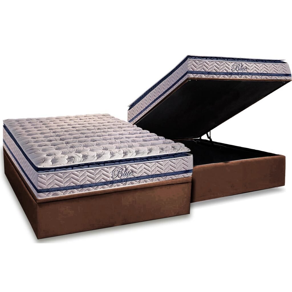 Colchão Casal Blue + Base Box Baú Avalon Branco – PAROPAS/AVALON