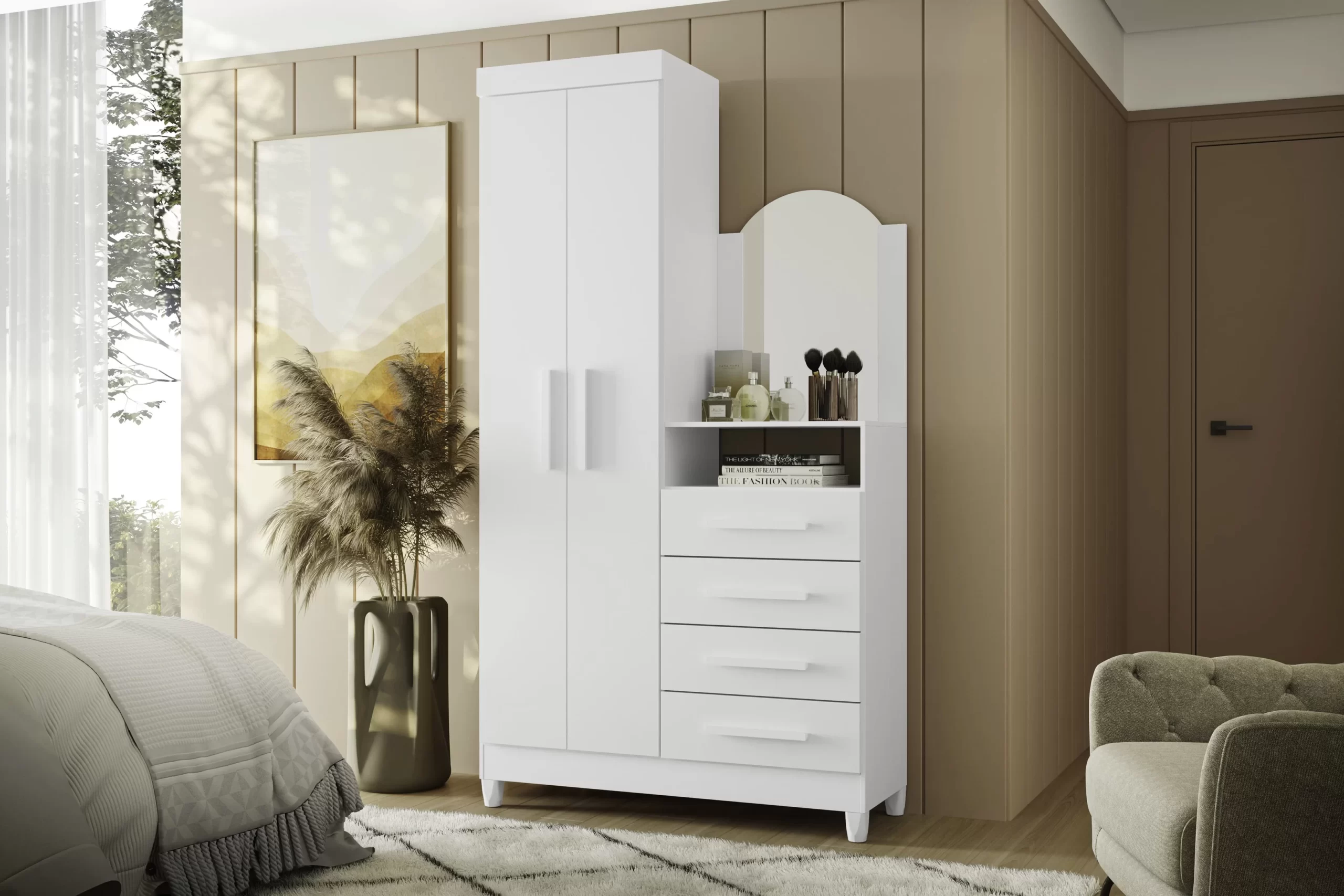 Guarda Roupa Cômoda Capri 2 Portas 4 Gavetas e Espelho