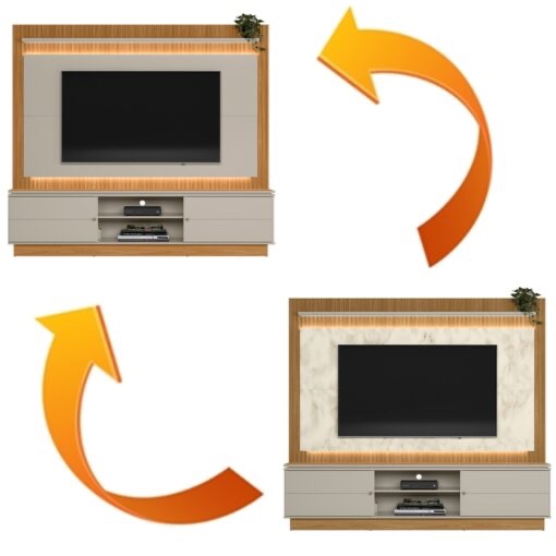 – Espaço para TV: 102 cm x 195 cm (AxL)