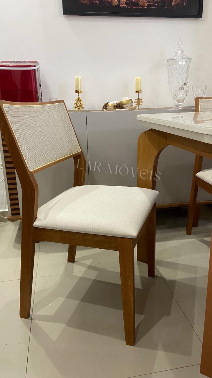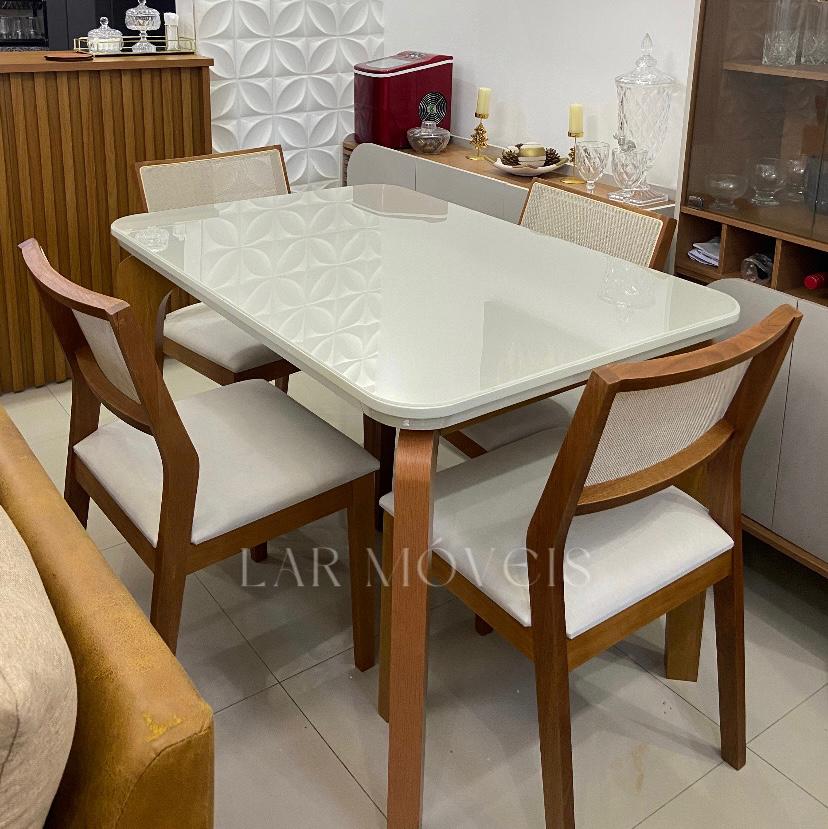 Mesa Londrina 120 Tampo Off White C/ 4 Cadeiras Oiti Linho Cru