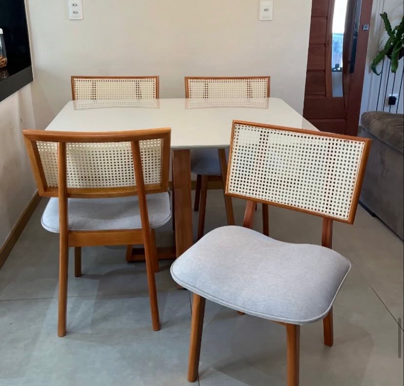 . Encosto com tela de rattan natural