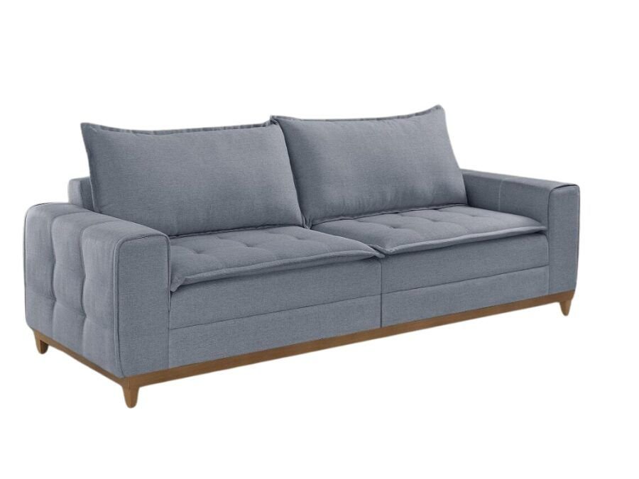 Espuma D26 Hiper soft envolvida com manta siliconada, sofá com Molas bonel e pillow 8 cm. Dividido em 2 módulos 0,80 para facilitar a desmontagem.
