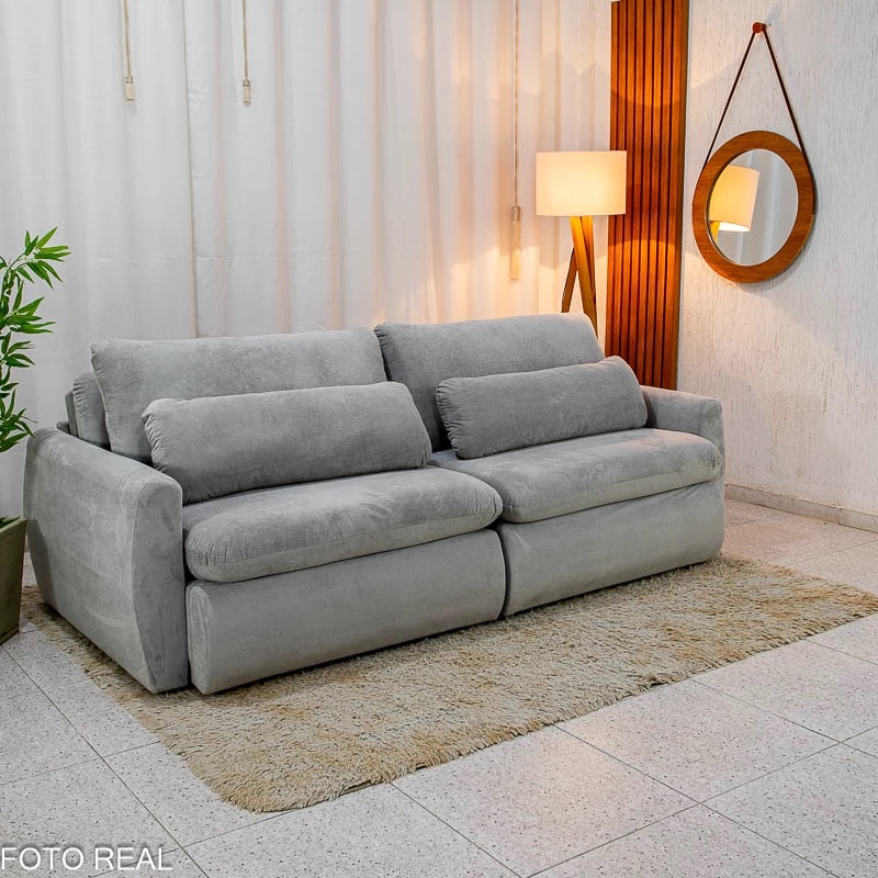 Esse modelo une conforto, praticidade e um visual elegante em um único produto. Com 2,30 metros de largura, ele acomoda bem até 4 pessoas e ainda vira uma cama espaçosa de 2,05×1,45m. ideal para receber visitas ou relaxar assistindo TV. Seu assento retrátil com pillow de 17cm e molas bonnel garante conforto mesmo por longas horas, e o encosto reclinável com almofadas soltas oferece aquele apoio extra para o corpo.