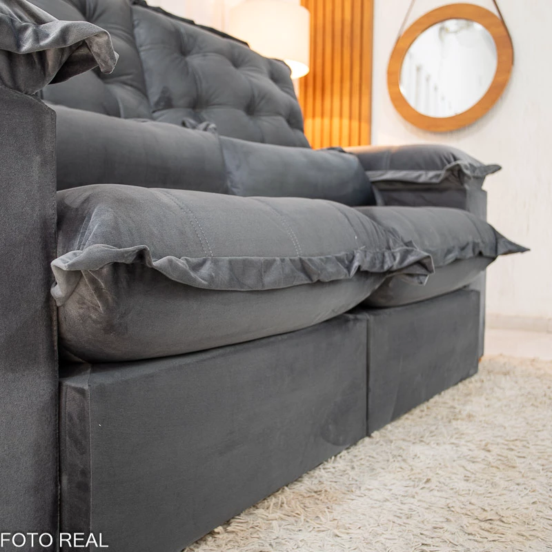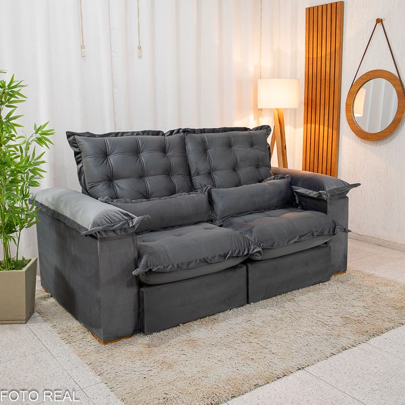 Sofá Retrátil Reclinável Maldivas 2.10m Veludo Grafite