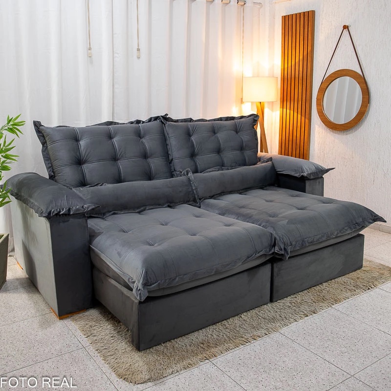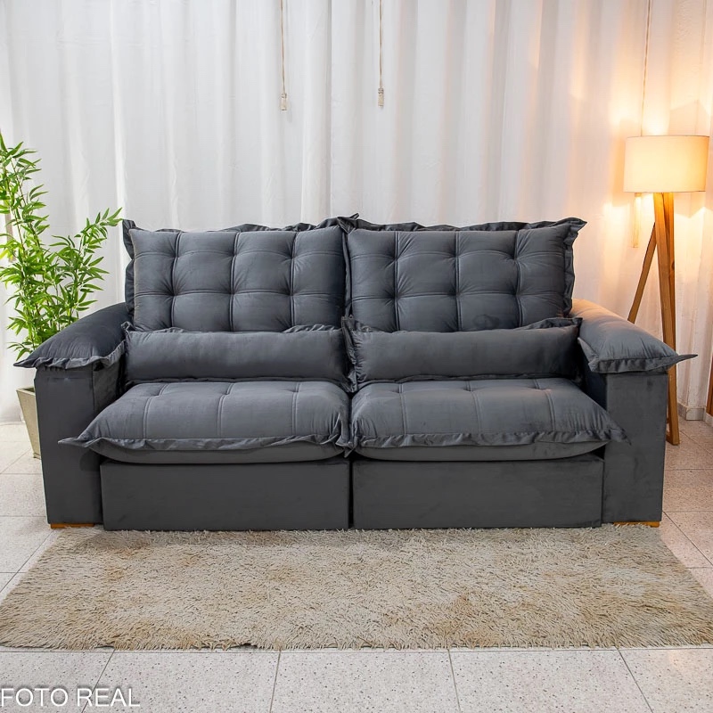 Sofá Retrátil Reclinável Maldivas 2.30m Veludo Grafite